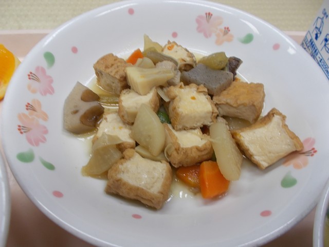 春野菜には、たけのこ、ふき、さやえんどうが入っていました。たけのこの食感が良く、モリモリ食べることが出来ました。
