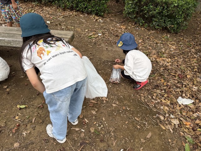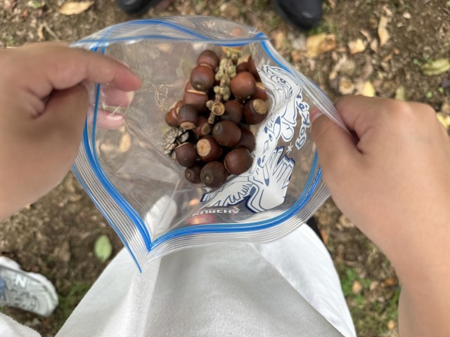 お弁当を食べた後は、どんぐり拾いです。たくさん拾うことができました。
