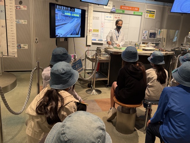 現代産業科学館の見学の様子です。科学実験を見たり体験したりして楽しみました。