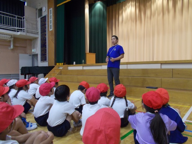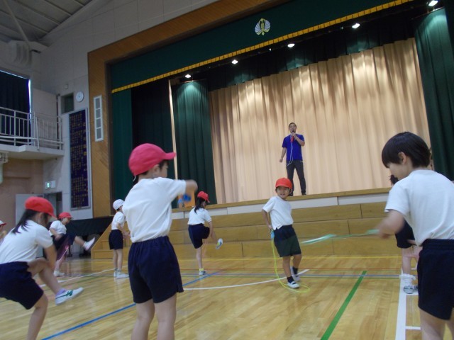 なわ跳びウイークがはじまり、今日はゲストティーチャーを招いての縄跳び集会と出前授業がありました。