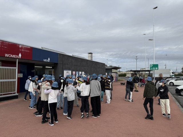 羽生パーキングエリアでトイレ休憩をして、大谷資料館を目指して出発しました。みんな元気です。