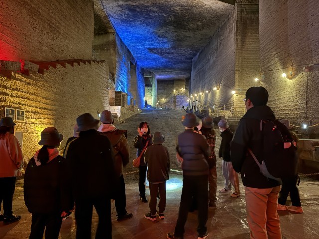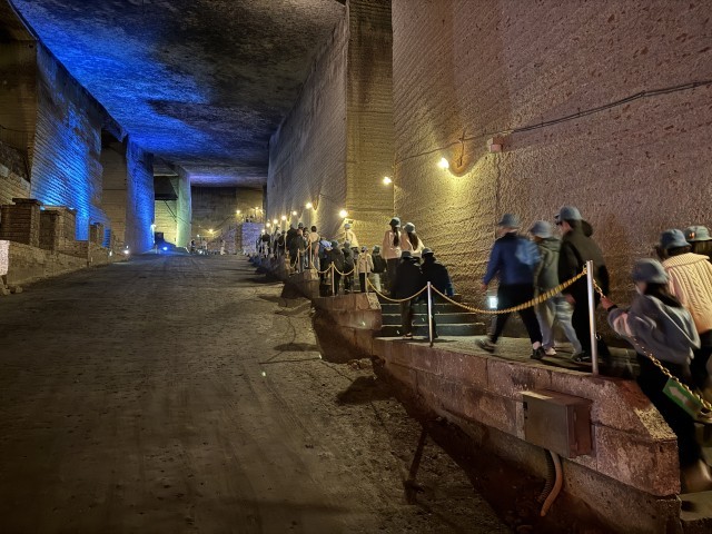 大谷資料館の見学の様子です。中の気温は約10度。とても幻想的な空間です。