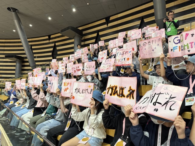 6年生は、デフリンピックのバスケットボール競技の観戦に行きました。会場では、男子 オーストラリア対ギリシャ、女子 オーストラリア対リトアニアの熱戦が繰り広げられていました。子供たちは、事前に作成した応援ボードを使ったり、サインエールを送ったりして応援しました。