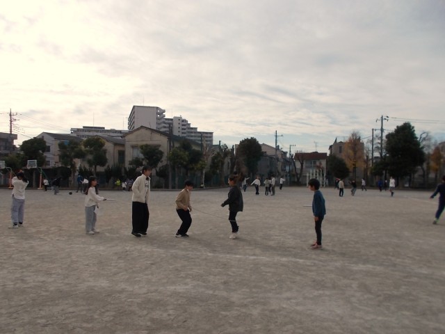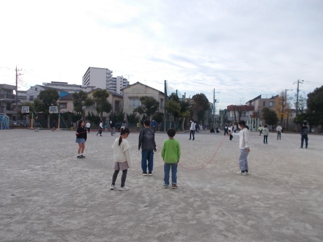 今日の20分休みは、2・5年生のなかよし班遊びの時間でした。少し肌寒い中でしたが、そんなことは気にもせず、子供たちは元気いっぱいに遊んでいました。大なわ跳び、ドッジボール、鬼ごっこをしている班が多い印象でした。