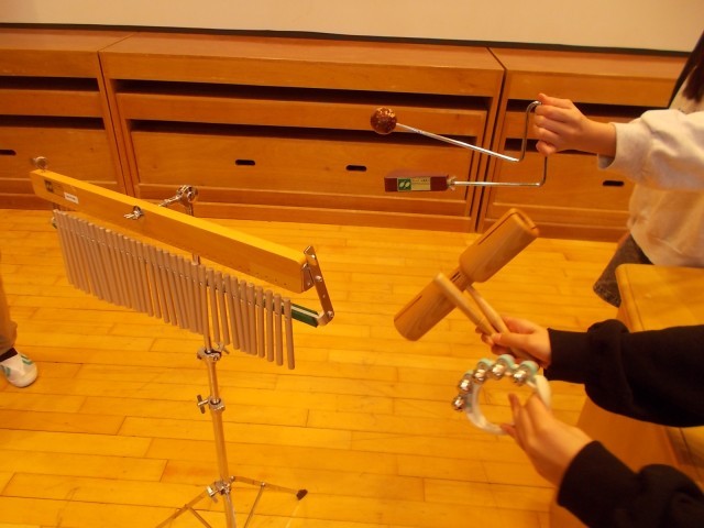 今朝の児童集会は、集会委員会による「楽器当てクイズ」でした。つい立の後ろで音を出してその音から楽器の名前を当てる問題2問と楽器を見て名前を当てる問題2問でした。3枚目の写真が今日使われた4つの楽器です。すず、ウィンドチャイム、ウッドブロック、ビブラスラップです。