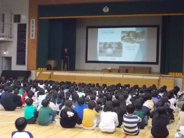 2028年(令和10年)4月に江戸川小学校と下鎌田東小学校が統合して、新しい学校が誕生します。今日の全校朝会では、2月18日(水)~3月16日(月)の期間に行われる「新しい校名案の募集」に向けて、校長から「東部地域と両校の歴史」についての話がありました。子供たちは真剣に話を聞きながら新しい学校への想いを膨らませているようでした。全校朝会の前には、代表委員による「ユニセフ募金」の取組が行われました。募金期間は2月20日(金)までです。募金にたくさん協力できるとよいですね。