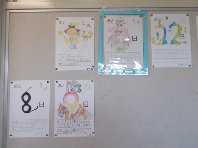 6年生は、卒業式に向けてカウントダウンが始まりました。一人一人が一枚ずつカウントダウンカレンダーを書きました。
