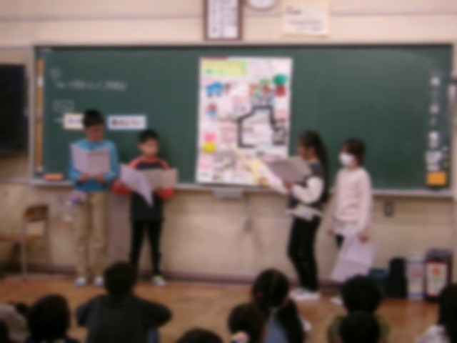 グループごとに発表内容を暗記し、差し棒を使ったり再現劇を入れたり、2年生に分かりやすく発表することができました。