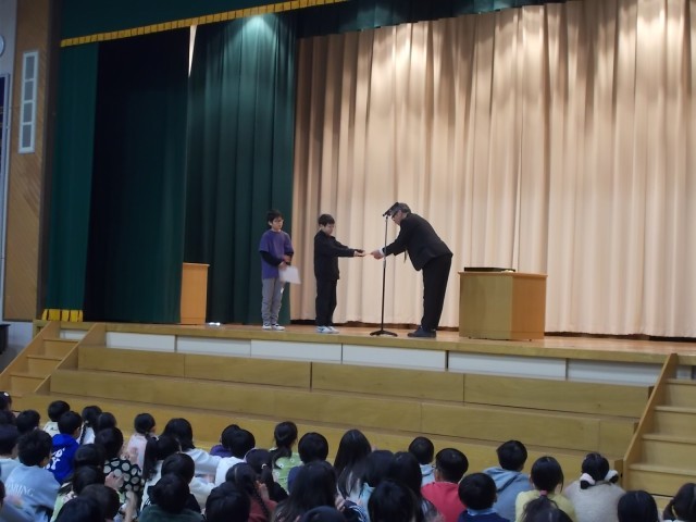 早いもので令和7年度の学校生活も、最後の1ヶ月に入りました。今日の全校朝会では、たくさんの表彰を行いました。一輪車、空手、東京都展覧会、図書館を使った調べる学習コンクール、しきなみ子供短歌コンクール、そして、江戸川区健康努力賞です。スポーツ、芸術、文化・・・いろいろな分野でたくさんの子供たちが活躍しています。賞を獲得した皆さん、おめでとうございます。表彰の最後に、健康努力賞を受賞した3名の6年生に「健康の秘訣」を聞いてみました。その答えは「よく走ること」「よく遊ぶこと」「早寝・早起き・朝ごはん」でした。