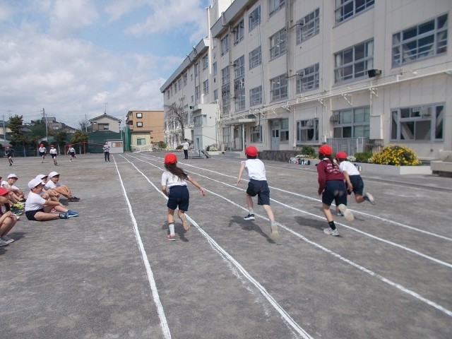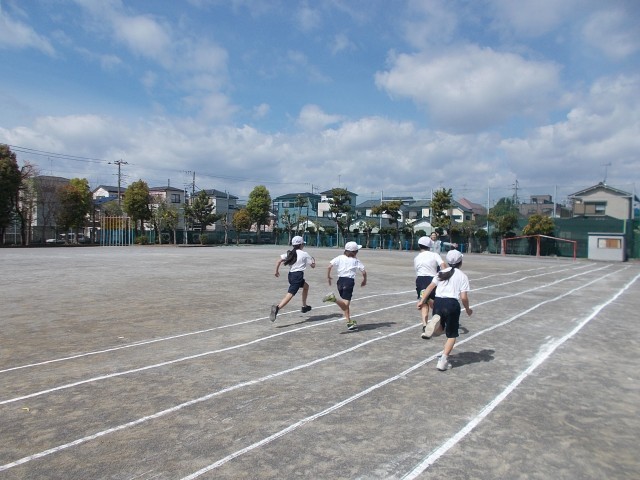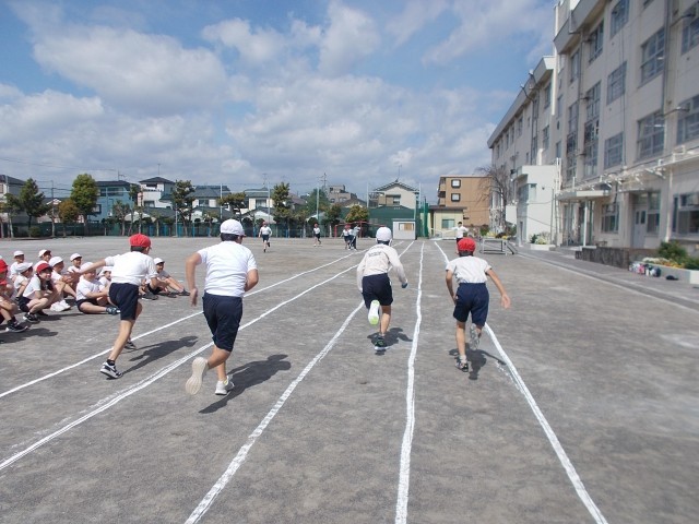 4年生の体育学習「かけっこ」の様子です。今日は、学年全体で50m走のタイムを計りました。小学校6年間を2つに分けた場合の高学年の仲間入りをした4年生。走る姿にも力強さが感じらえるようになりました。応援の声も響き、高学年の「やる気」が伝わってきました。