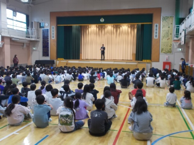 先週の木曜日、4月23日は「子ども読書の日」でした。子ども読書の日は、子供の読書活動に対する関心と理解を深めるために、2011年に制定されたそうです。今日の全校朝会は、この子ども読書の日に関連して、校長が本の読み聞かせを行いました。読んだお話は、作家のあまんきみこさんが書いた「山ねこおことわり」です。4年生がちょうど今国語で学習している、あまんきみこさんの「白いぼうし」と同じシリーズのお話です。まもなくゴールデンウィークになります。各地で開かれている読書に関するイベントに参加するのもいいでしょうし、自由な時間を読書をして過ごすのもいいでしょう。子供たちには、本の世界を大いに楽しんでほしいと思います。