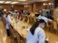 ホテル高照に到着しました。外は強い雨です。急遽場所を準備していただき、ホテル内で開校式を行いました。ホテルの方に気持ちのよい挨拶ができました。3日間、よろしくお願いします。
