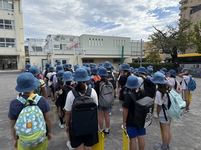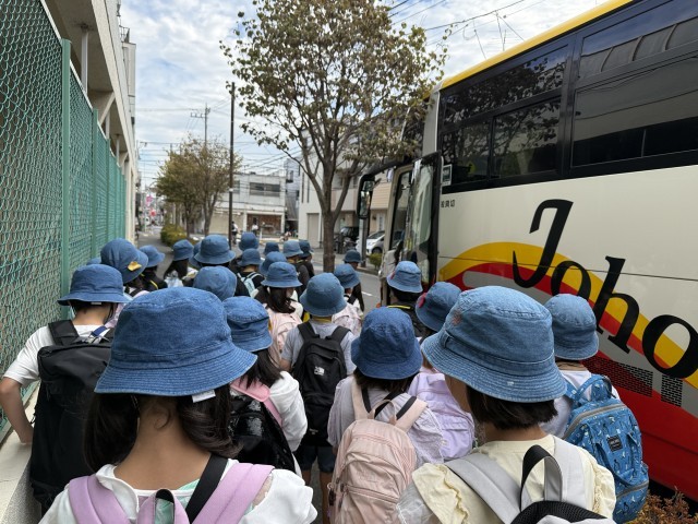 社会科見学に出発します。目的地は、中央防波堤埋め立て処分場、潮風公園、有明水再生センターです。4年生全員参加で元気に行ってきます!