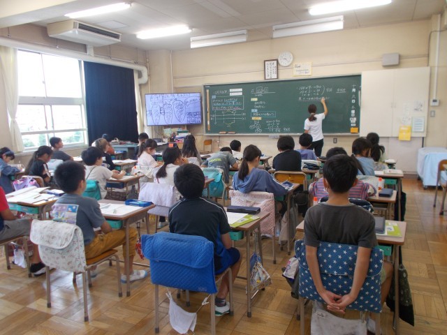 江戸川区の先生方が集まって、「単位量あたりの大きさ」の授業を見学されていました。