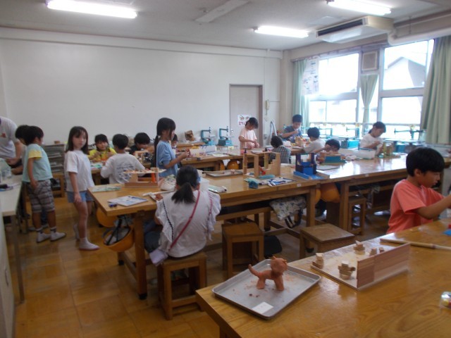 3年生は、シーサーとその家を作っています。シーサーの頭を胴体と付けるのが