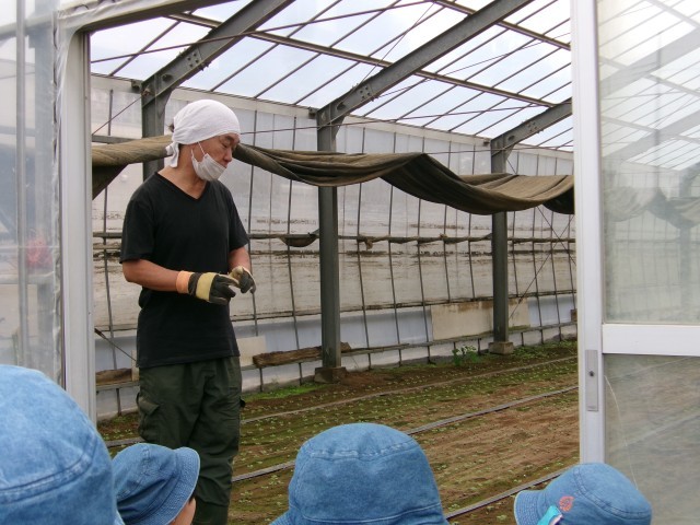 給食でもよく食べる小松菜をどのように育てているのか、農家の方に説明をしてもらいました。