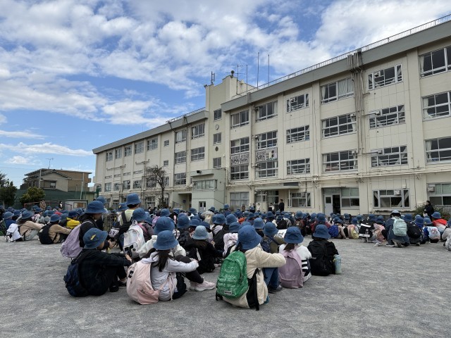 帰りは、雨が落ちてくる時間もありましたが、全員ががんばって歩ききりました。学校に着くと教室に入り、放送で到着式を行いました。