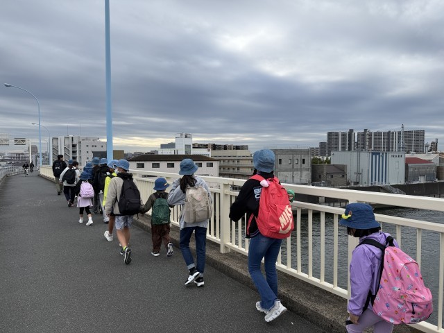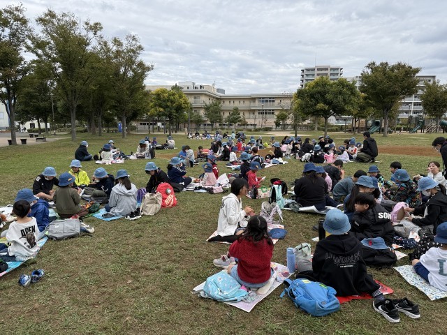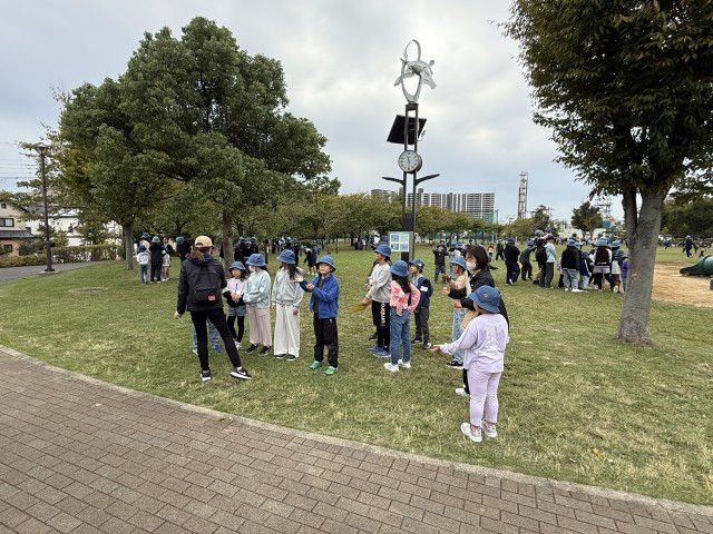 今日は、なかよし遠足です。少し肌寒いですが、歩くのにはちょうど良い気候です。目的地は、市川市広尾防災公園です。約40分歩いて到着しました。