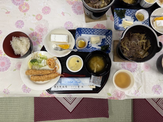 1日目の夕飯です。今日だけでもたくさん活動したので、お腹が減っています。いただきます!