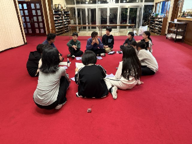 1日目夜のレクレーション(きもだめし)が終わりました。それぞれがいろいろな楽しみ方をしたようです。レクが終わり、これから班会議、班長会議、就寝準備と続きます。