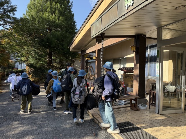 閉校式を行い、梅屋敷旅館を出発しました。梅屋敷旅館のおかみさんを始め、スタッフの皆様には大変お世話になりました。ありがとうございました。