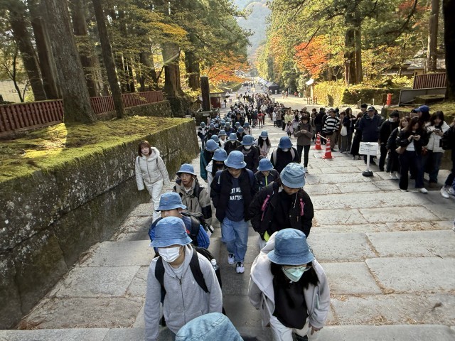 移動教室最終日の朝。今日も素晴らしい天気です。3日間、天候に恵まれました。東照宮を見学し、お土産を買って東京へ戻ります。