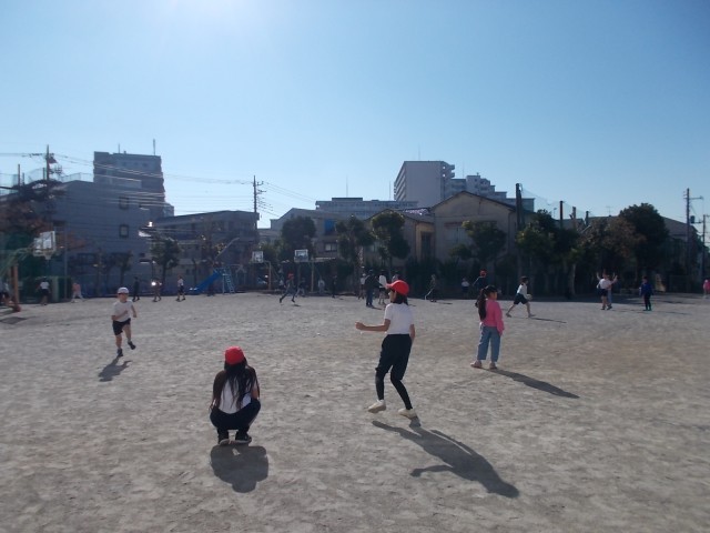 今日は、3・4年生のなかよし班遊びの日でした。中休みに、校庭で元気よく遊びました。朝夕の気温が下がってきていますが、日中は太陽の光が暖かく、絶好の外遊び日和でした。ドッジボール、鬼ごっこ、長縄、だるまさんが転んだ・・・様々な遊びをなかよし班で楽しんでいました。