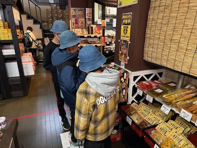塩沢江戸川荘を後にし、お土産屋さんに到着しました。子供たちは、渡す相手を考えながら、楽しく買い物をしていました。