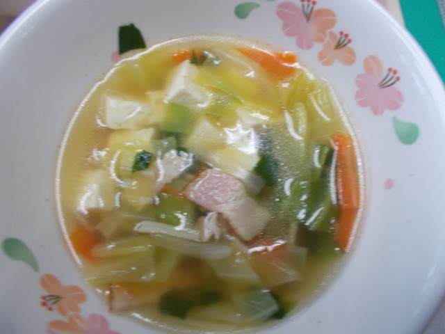 また江戸川区の名産、小松菜がスープに入っています。小松菜には鉄分やカルシウムなどが多く栄養価が高い野菜です。