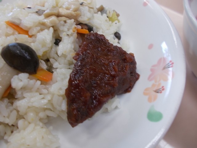 今日は秋が旬の栗が入った五目御飯です。栗は昔から食べられている食べ物です。2000年まえの縄文時代から食べられているようです。