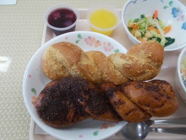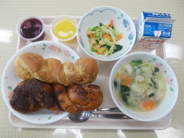 今日は、2学期の「セレクト給食」です。揚げパンの味とゼリーを選ぶメニューにしました。(A~きなこ揚げパン、ぶどうゼリー B~ココア揚げパン、オレンジ寒天ゼリー)クラスによって差はありますが、選んだ人の数の合計は、Aが235人、Bが119人でした。給食室では、2種類の給食を作るために朝から大忙しでした。2学期の給食も残り3回です。作ってくれた人への感謝の気持ちをもって、味わっていただきたいと思います。(※写真は、A,Bの両方が一緒にのっています。)