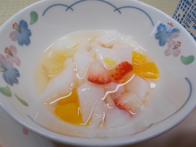 今日の給食のメニューは、きなこトースト、クラムチャウダー、カラフルサラダ、いちご、牛乳です。今日の果物は「いちご」です。ハウス栽培で育てられたいちごは、1月~3月が最も甘くておいしい「旬のピーク」です。いちごには、ビタミンCがたくさん含まれています。中くらいのサイズのいちごなら、5~6つぶ食べれば、一日分のビタミンをまかなうことができます。ビタミンCは、皮膚や血管の老化を防いだり、がんやストレスをブロックしたりします。