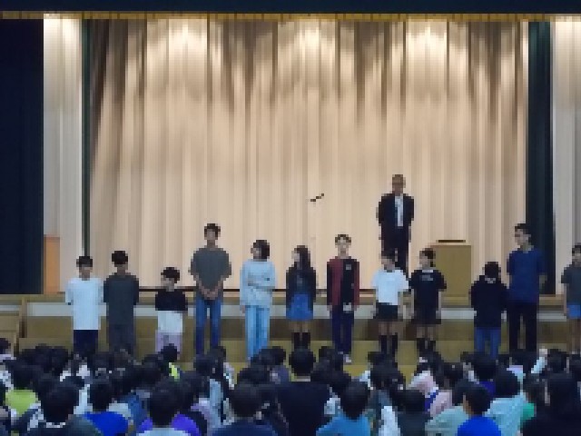 今朝の全校朝会では、3つの表彰を行いました。最初は、先週開かれた6年生の体育大会...