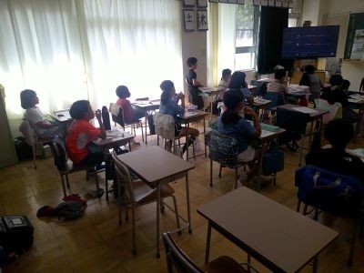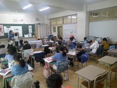 校舎内にもあれこれ貼ってあるポスター。どういう人に向けて作られているか、どんな情報を伝えようとしているか、工夫は・・・。3年生が国語の学習でポスターに注目して情報を発信すること、受け止めることなどについて学んでいました。