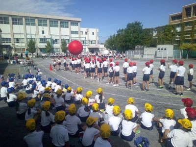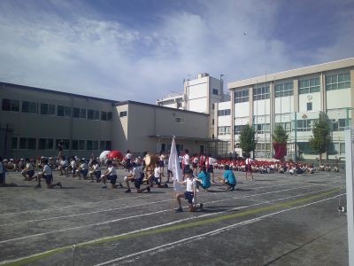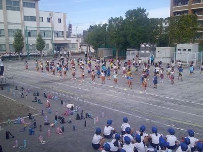 スポーツフェスティバルのリハーサルを行いました。全校揃っての開会式、準備運動に続き応援合戦。応援団のがんばり、吹奏楽部の演奏に応えるかのように大きな声が響きました。その後、3,4年生の団体競技、1年生の表現と続きました。