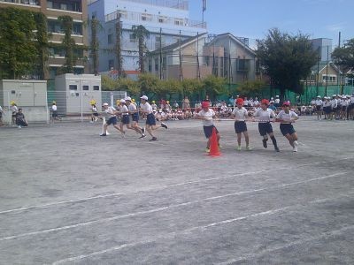 5,6年生の団体競技、3年生の表現、2年生の表現と続きます。各学年の表現では鑑賞している一部の子どもたちが一緒に踊り始めるなどして、校庭いっぱいに楽しい雰囲気が広がりました。
