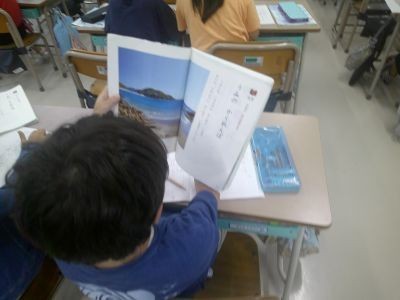 1年生の国語で「うみのかくれんぼ」という作品を読み始めています。「うみのかくれんぼ」という題名から子どもたちはいろんなことを想像していました。海に何がどのように隠れているのか。興味をもちながら読み進めていきます。