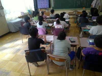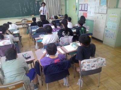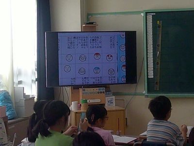 4年生の国語は「ごんぎつね」。場面場面での登場人物の気持ちの読み取りが中心です。その気持ちを顔の表情のマークで整理しながら読んでいました。笑顔、泣き顔、驚いた顔・・・。どんな表情がどう表れてくるか。
