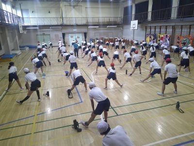 5年生、6年生、それぞれに準備運動をするなどして、いざ満を持しての本番です。