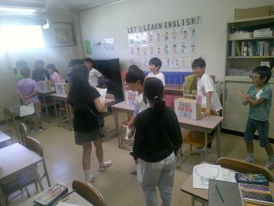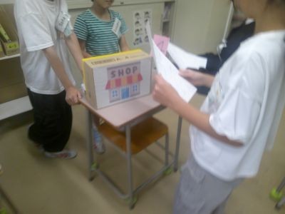 4年生が外国語活動で買い物ごっこをしていました。文房具屋さんでお店の人、お客さんに分かれてのやりとり。楽しくがんばっていました。「いらっしゃい、いらっしゃい」と呼び込みをしているので「それも英語で」と声をかけました。