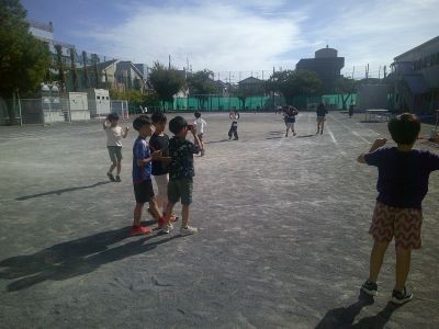 3年生が校庭に出て遮光板を使いながら太陽を見ていました。理科の学習です。太陽と自分の影の位置を確かめるなどしていました。太陽と地面の様子との関係、日なたと日陰の様子などについて学んでいきます。