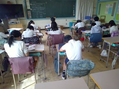 画用紙1枚の重さを量るのは難しい。100枚なら量りやすい。では100枚の重さから1枚の重さがわかるのでは・・・。6年生の算数は比例の学習へと進んでいます。画用紙の枚数と重さのような関係について学んでいきます。