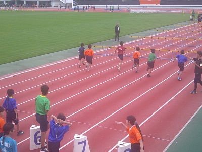 写真は50mハードル、1000m走です。仮校舎で十分な練習はできませんでしたが、それでも力いっぱい走る様子はとてもかっこよかったです。スタンドでは応援が絶えませんでした。