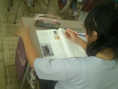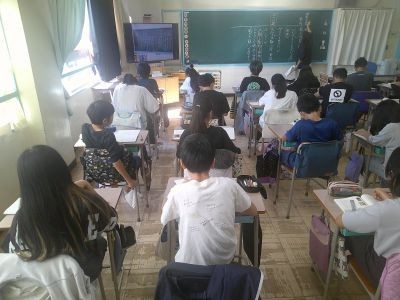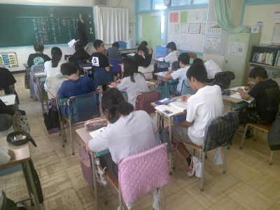 国語で「やまなし」という作品を読んできた6年生。その作者宮沢賢治について生い立ちや経歴を、作品と関連付けながら確認していました。作家の生きざまと作品の数々。そこから感じることもあると思います。
