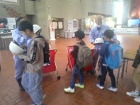 写真は4年1組の給食準備風景。今日のご飯には「もち麦」が入っていました。もち麦は、白いご飯の約25倍の食物繊維が含まれているそうです。おなかの調子を整えてくれるので、意識的に取り入れるよいですね。