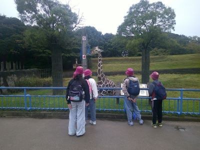 園内に移動すると雨が上がりました。予定通りグループごとでの見学を開始です。間近に動物が見られます。地図を見ながら園内のさまざまなエリアに足を運んでいました。