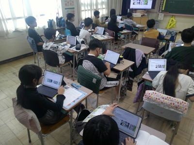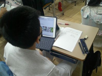日本の工業を学習している5年生。自動車がどのように作られているかを調べていました。昨日、製鉄所でその材料となる鉄が作られる様子を見学しました。そのことも踏まえながら学習を進めていました。