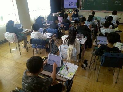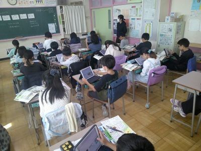 5年2組の社会の授業を参観しました。日本の工業の代表である自動車の生産。それがどのように進められているのかという学習です。プレス、溶接、塗装、組み立て、検査という基本の流れを確認し、機械化されている工程と人の力を必要とする内容に整理したり、作業の中での工夫を調べたりしていました。グループでも話し合いながら、効率化を図る、ミスを減らす、安全に作業するなどの目的で、大小さまざまな工夫が行われていることを学んでいました。
