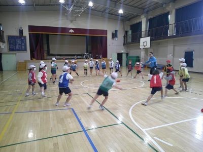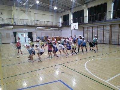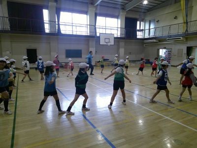 3年生の体育。みんなで円になり、流れる音楽に合わせて手や足、体全体を使っていろいろな動きをしていました。友だちの様子が見えるとさらに張り切る子もいます。次はまっすぐになってみんなで調和するように体を動かし・・・。みんなとても楽しそうでした。