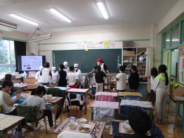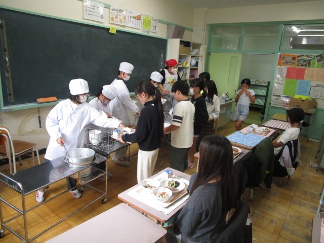 今日の給食は、福岡県の郷土料理です(写真は4年2組の給食準備風景)。
